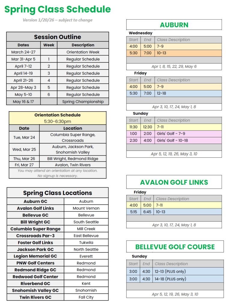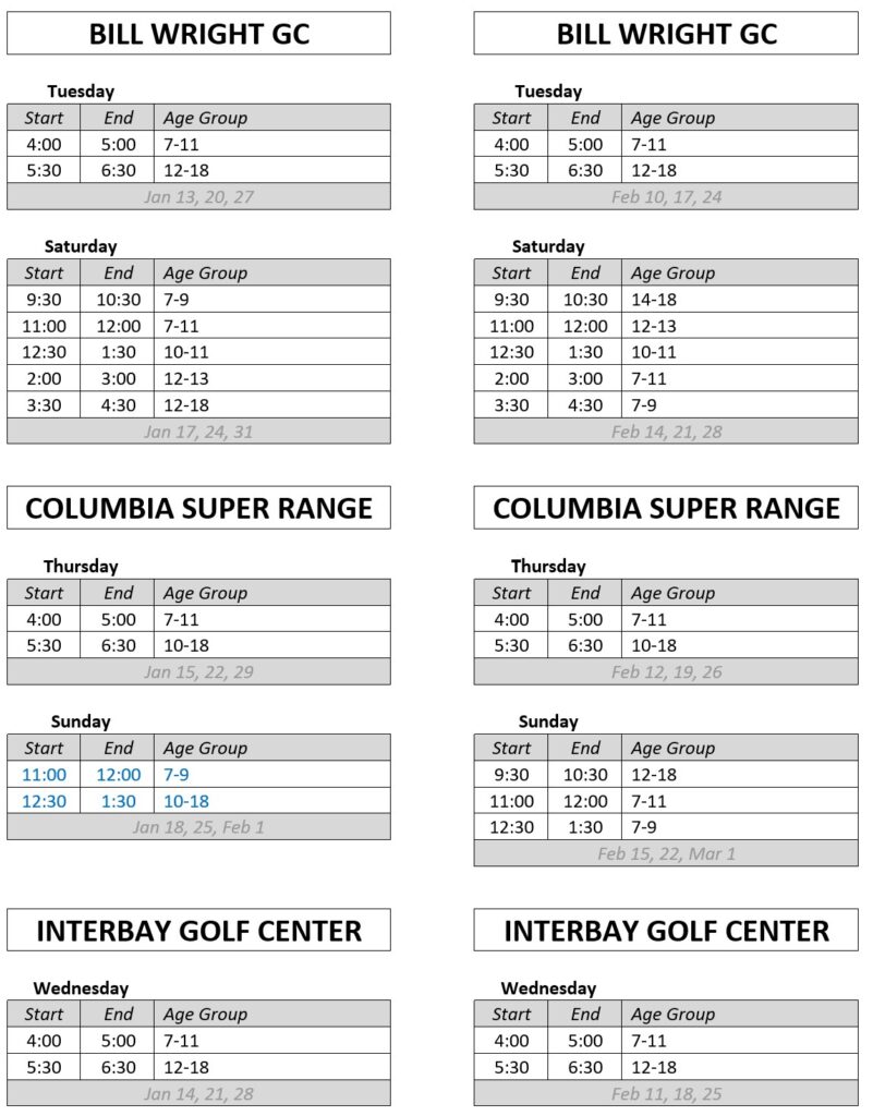 | Winter Clinic Series 3-week series | 7-18 | S1 closes Jan 9 S2 closes: Feb 6 | S1: Jan 13 S2: Feb 10 | S1: Feb 1 S2: Mar 1 |