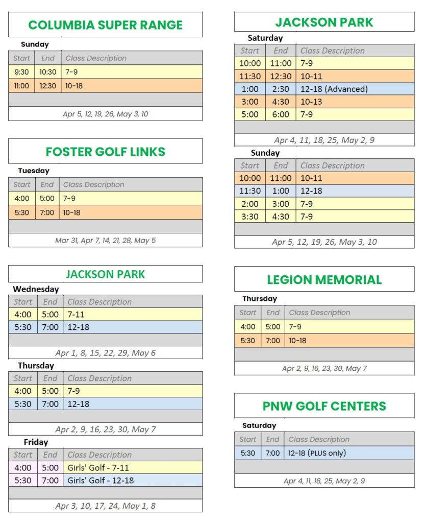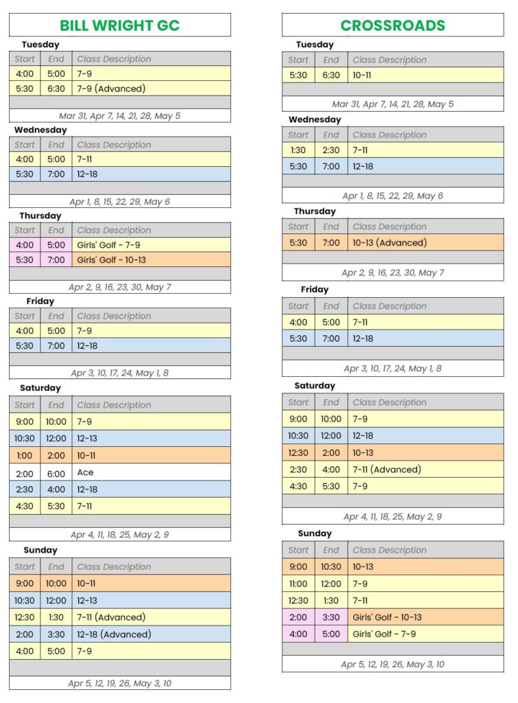 Weekly golf and life skills education for age 7-18